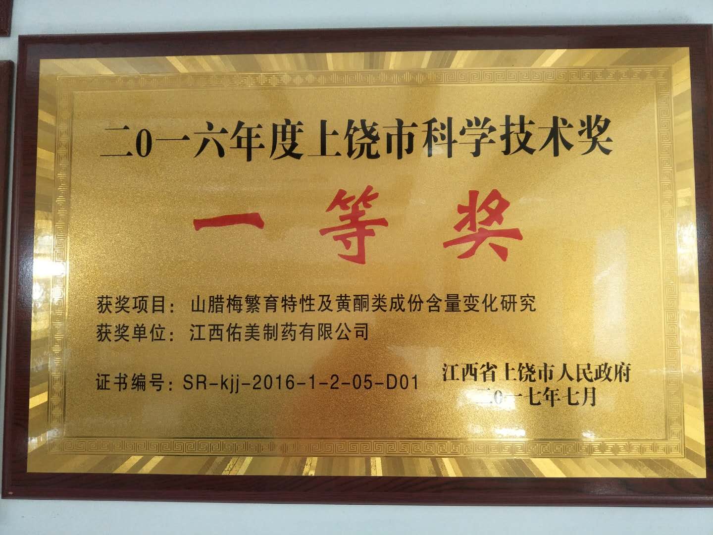 2016年度上饒市科學技術獎獲獎項目公告